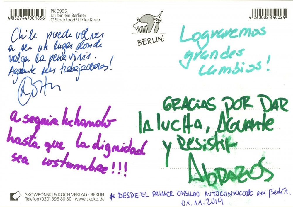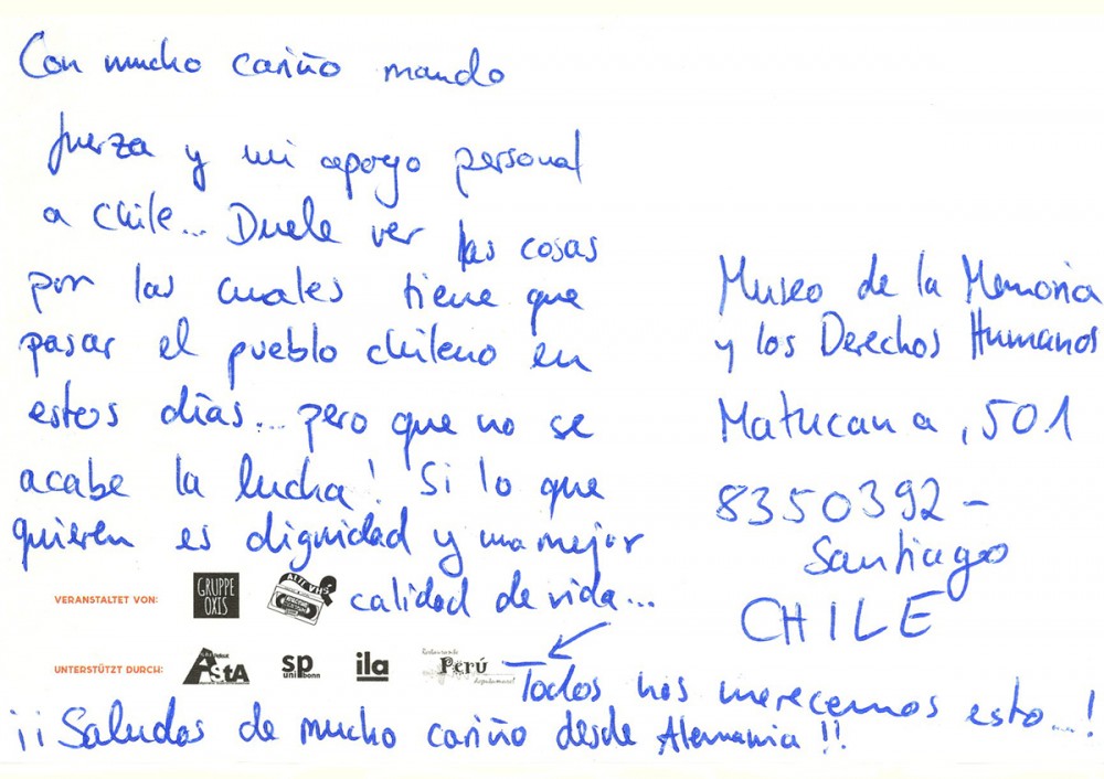 A partir de octubre de 2019, fueron innumerables las acciones culturales solidarias y mensajes que se desplegaron a nivel internacional en apoyo a las manifestaciones sociales.